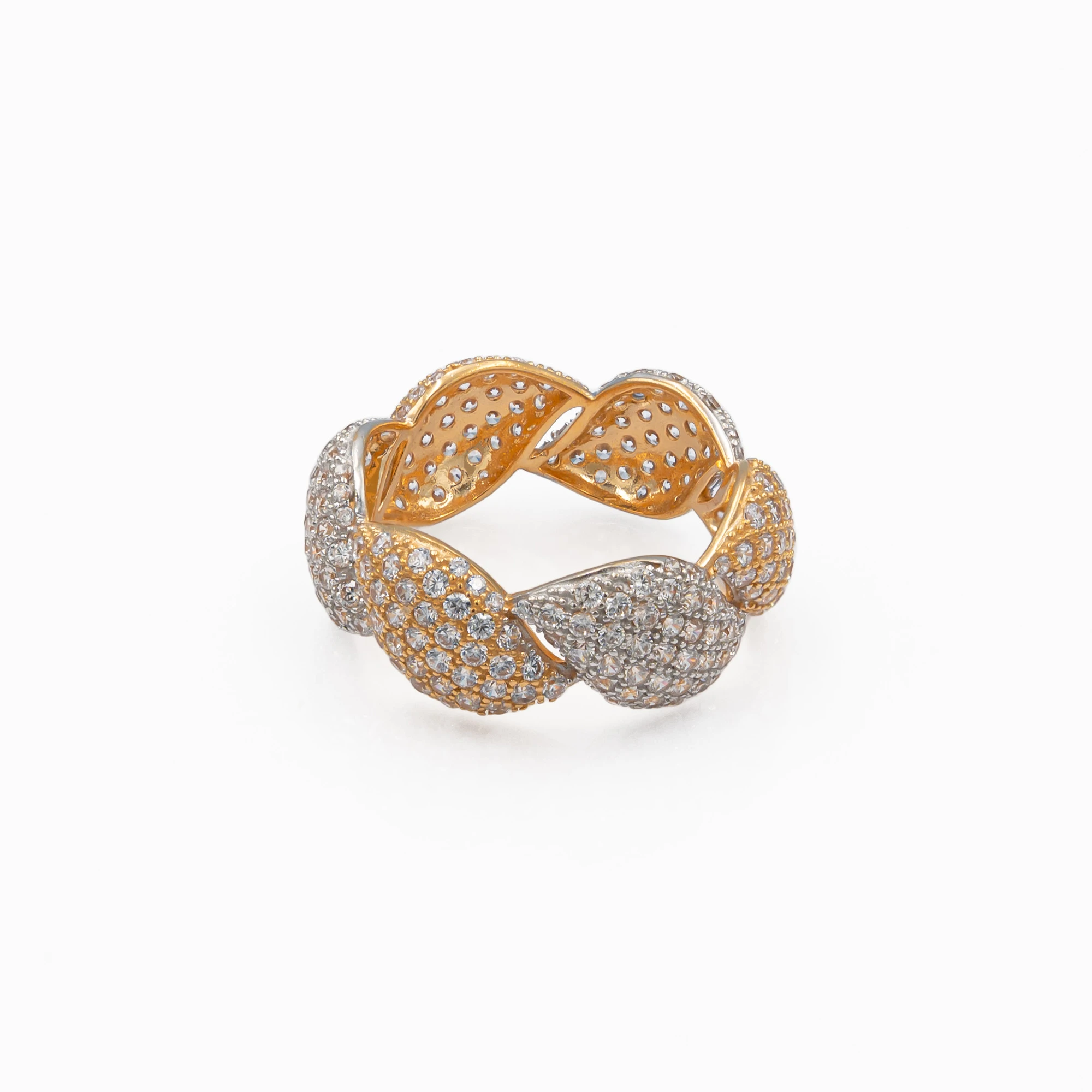 خاتم بتصميم عصري مفتوح يجمع بين البساطة والفخامة. مرصعة بأحجار لامعة تمتد بانسيابية على الجانبين، مع لمسة وردية ناعمة عند الأطراف تضيف تميزًا وأناقة رقيقة. تصميمها المريح يجعلها مناسبة للارتداء اليومي