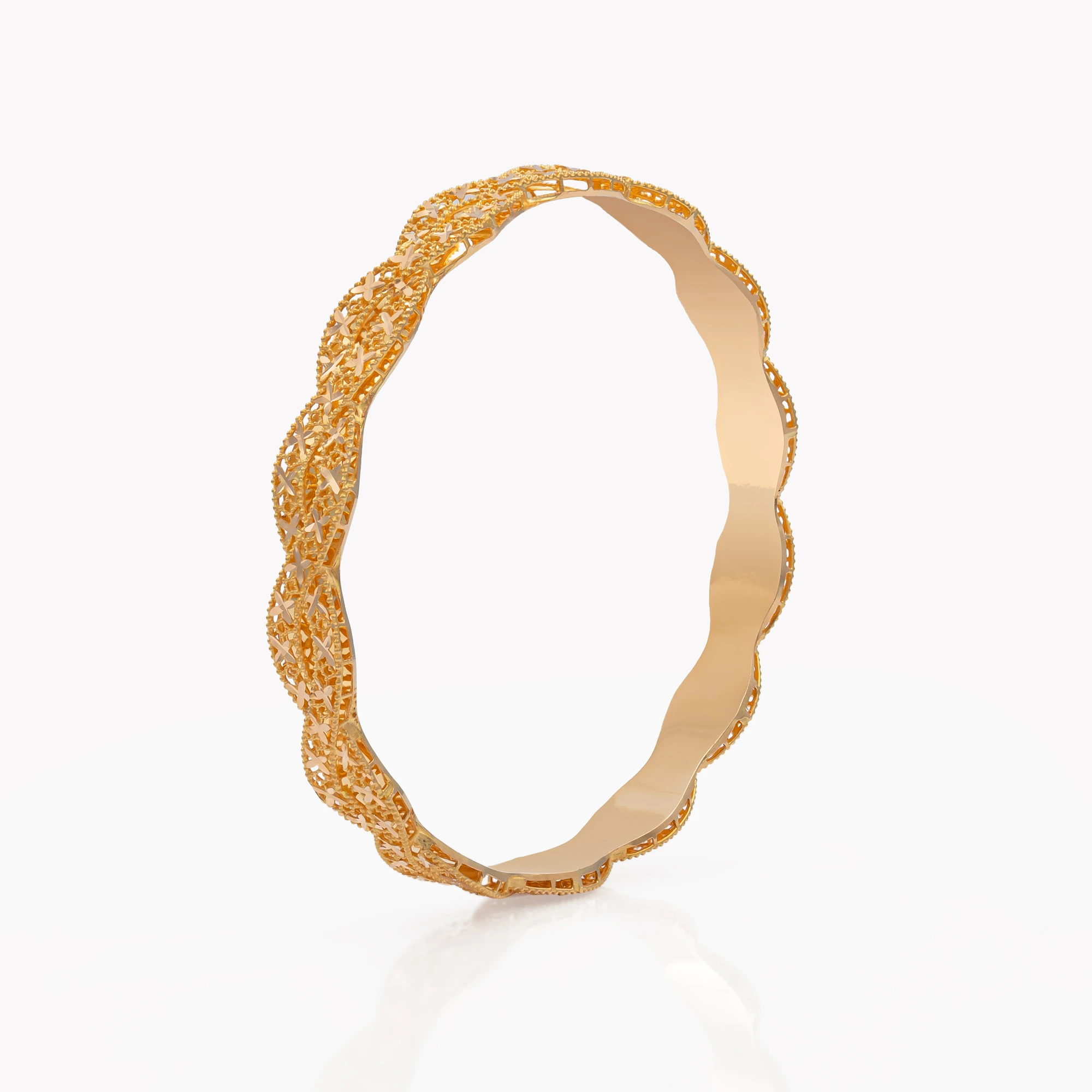 يأتي النقش على شكل خطوط مائلة محاطة بنقاط لامعة، مما يضيف حركة وبريقًا مميزًا لكل قطعة