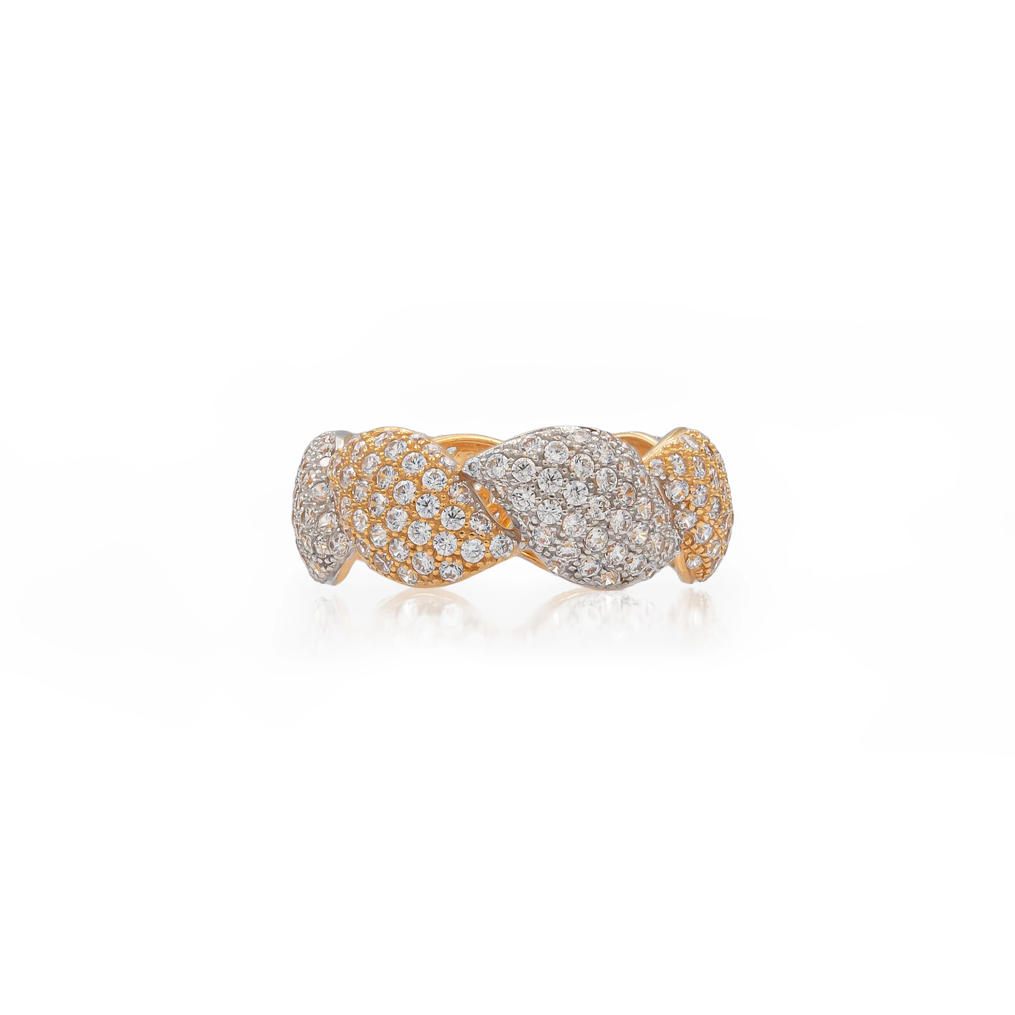 خاتم بتصميم عصري مفتوح يجمع بين البساطة والفخامة. مرصعة بأحجار لامعة تمتد بانسيابية على الجانبين، مع لمسة وردية ناعمة عند الأطراف تضيف تميزًا وأناقة رقيقة. تصميمها المريح يجعلها مناسبة للارتداء اليومي