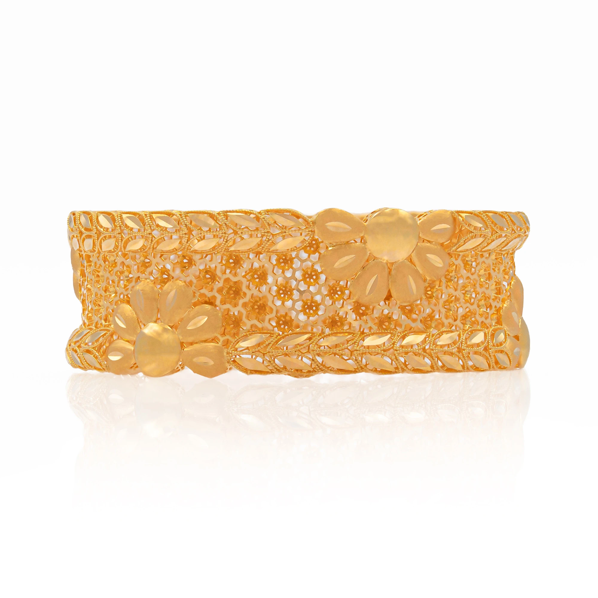 بناجر وردات تركي مصنوع من الذهب بلونه الأصفر اللامع، ويتميّز بتصميم راقٍ يجمع بين الإتقان والزخرفة الدقية يأتي السوار بشكل دائري ثابت